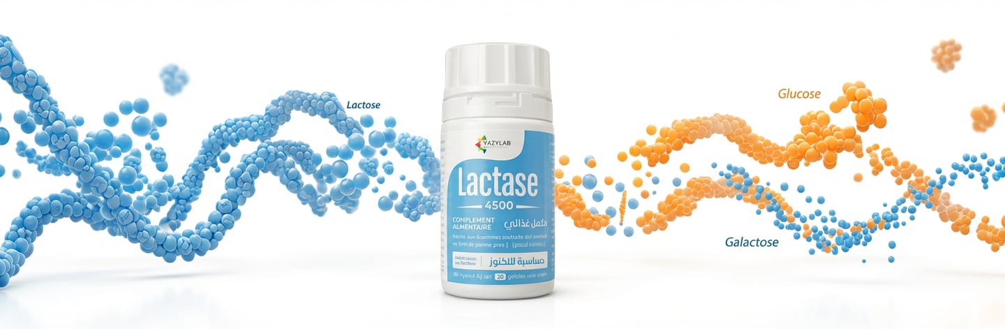L’intolérance au lactose touche un grand nombre de personnes en Algérie, souvent sans qu’elles en aient pleinement conscience. Ballonnements, douleurs abdominales, gaz, lourdeur après les produits laitiers… Ces symptômes peuvent rapidement perturber le quotidien. C’est pour répondre à ce besoin réel qu’a été développé Lactase 4500, un complément enzymatique spécialement conçu pour aider les personnes intolérantes au lactose à digérer plus facilement les produits laitiers. Chaque géllule contient 4500 FCC de lactase, une unité de mesure utilisée internationalement pour évaluer l’activité enzymatique.